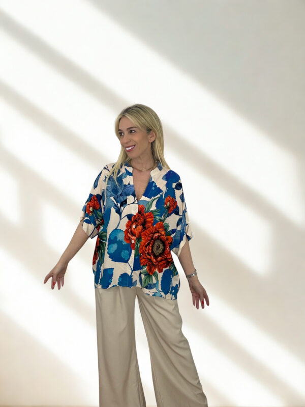 ΠΟΥΚΑΜΙΣΟ ALESSIA ONE SIZE ΜΕ FLORAL PRINT ΣΕ ΜΠΛΕ ΕΚΡΟΥ ΚΟΚΚΙΝΟ