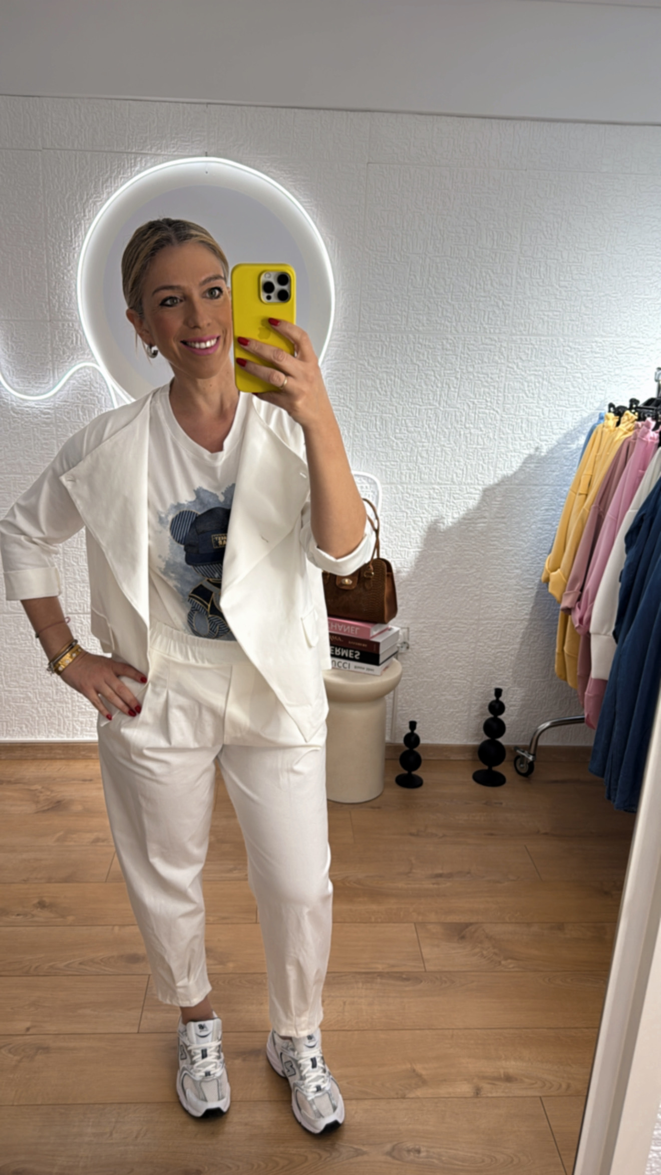 Σετ μπλούζα -παντελόνι RALLOU 86778 με μπουτονιέρα σε Λευκό