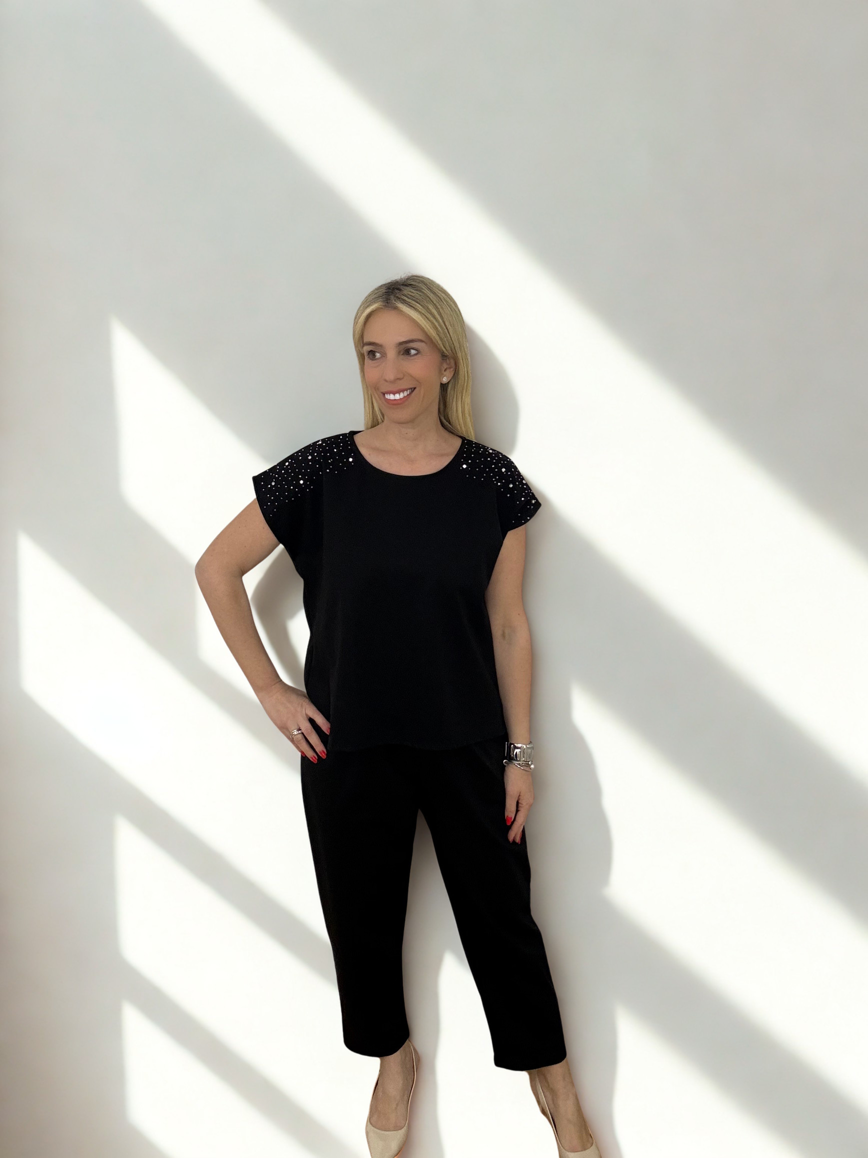 ΣΕΤ ANVERSA ONE SIZE ΠΑΝΤΕΛΟΝΙ ΜΠΛΟΥΖΑ ΜΕ ΔΙΑΚΟΣΜΗΤΙΚΑ ΣΤΟΙΧΕΙΑ ΣΕ ΜΑΥΡΟ