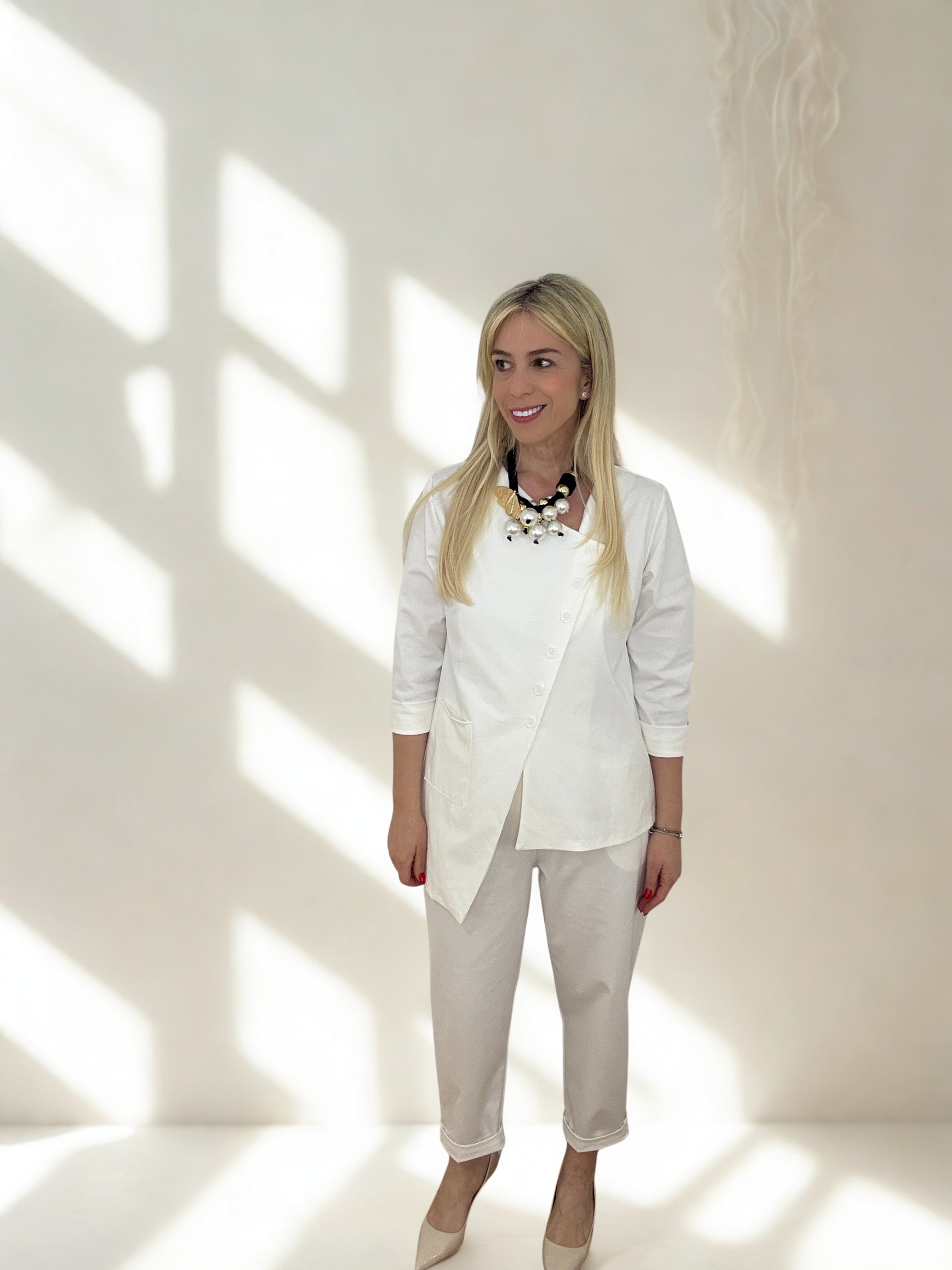 Γυναικείο σετ σακάκι & παντελόνι από υψηλής ποιότητας ιταλική ποντοστόφα, ιδανικό για κομψές αλλά και άνετες εμφανίσεις όλη την ημέρα.