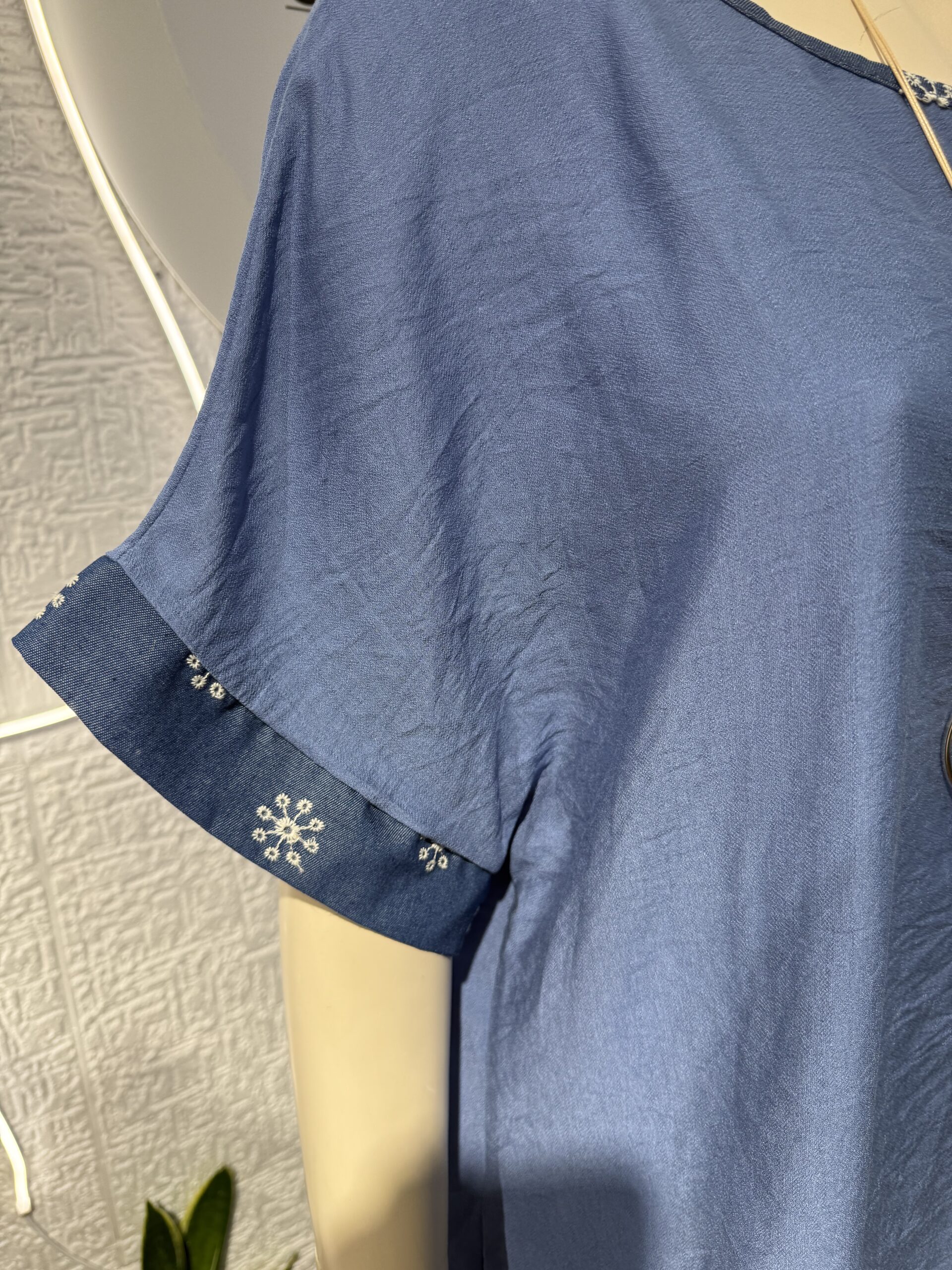 Αέρινο δροσερό  σετ σε άνετη γραμμή με όμορφη λεπτομέρεια στο λάστιχο της μέσης και στα μανίκια. Κατάλληλο για τις καθημερινές εμφανίσεις σου. Έχει κοντό χαλαρό μανίκι και άνετο λάστιχο της μέσης. Μπορεί να φορεθεί με την μπλούζα απέξω για πιο χαλαρό στυλ καθώς και με τη μπλούζα από μέσα για να αναδειχτεί η όμορφη  λεπτομέρεια στο λάστιχο της μέσης.