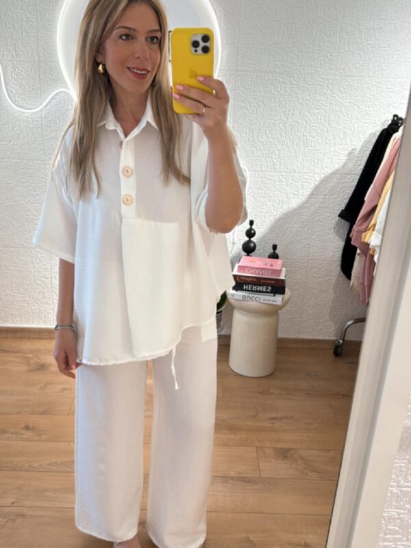 Σετ μπλούζα -παντελόνι RALLOU 86778 με μπουτονιέρα σε Λευκό