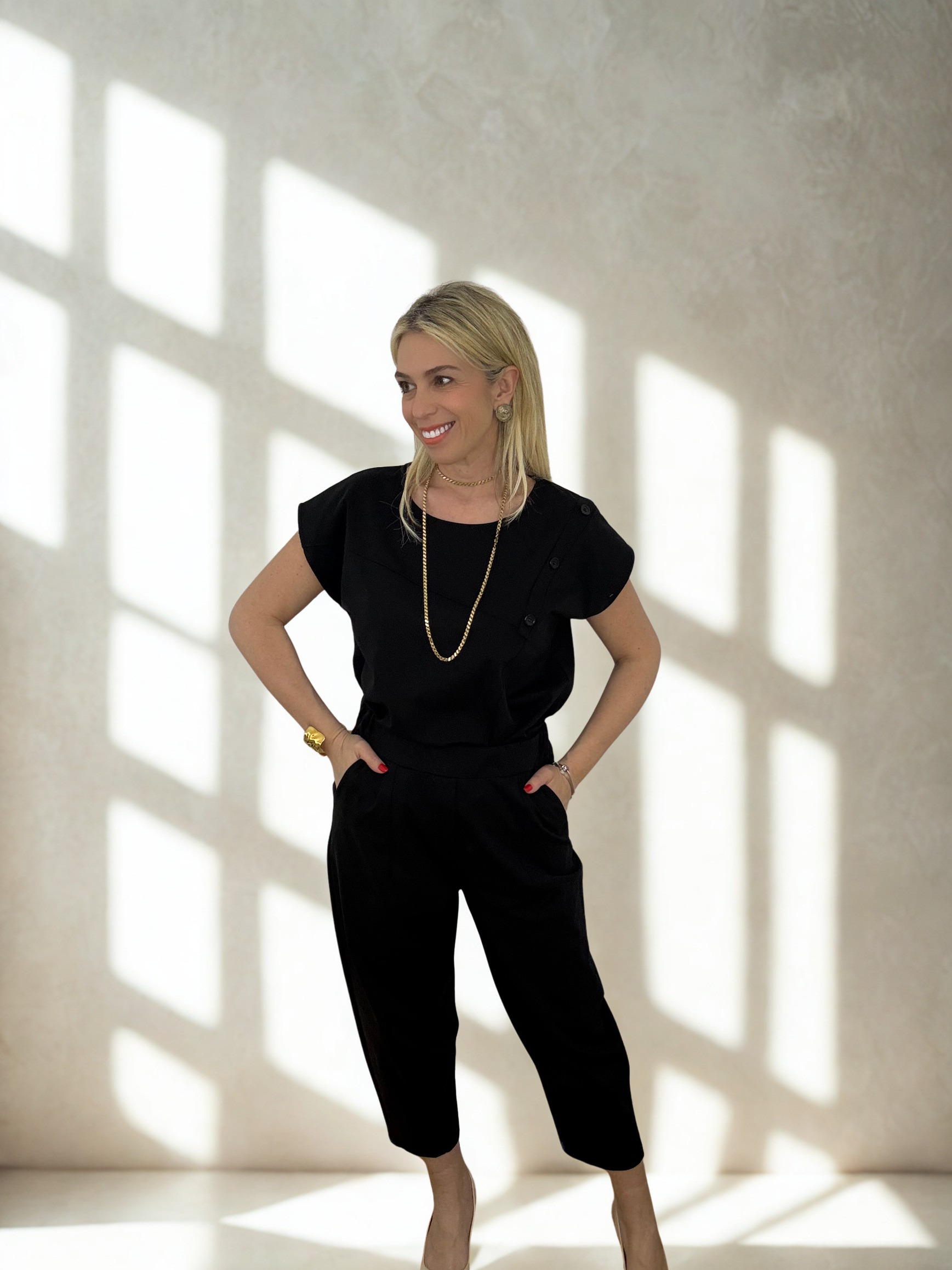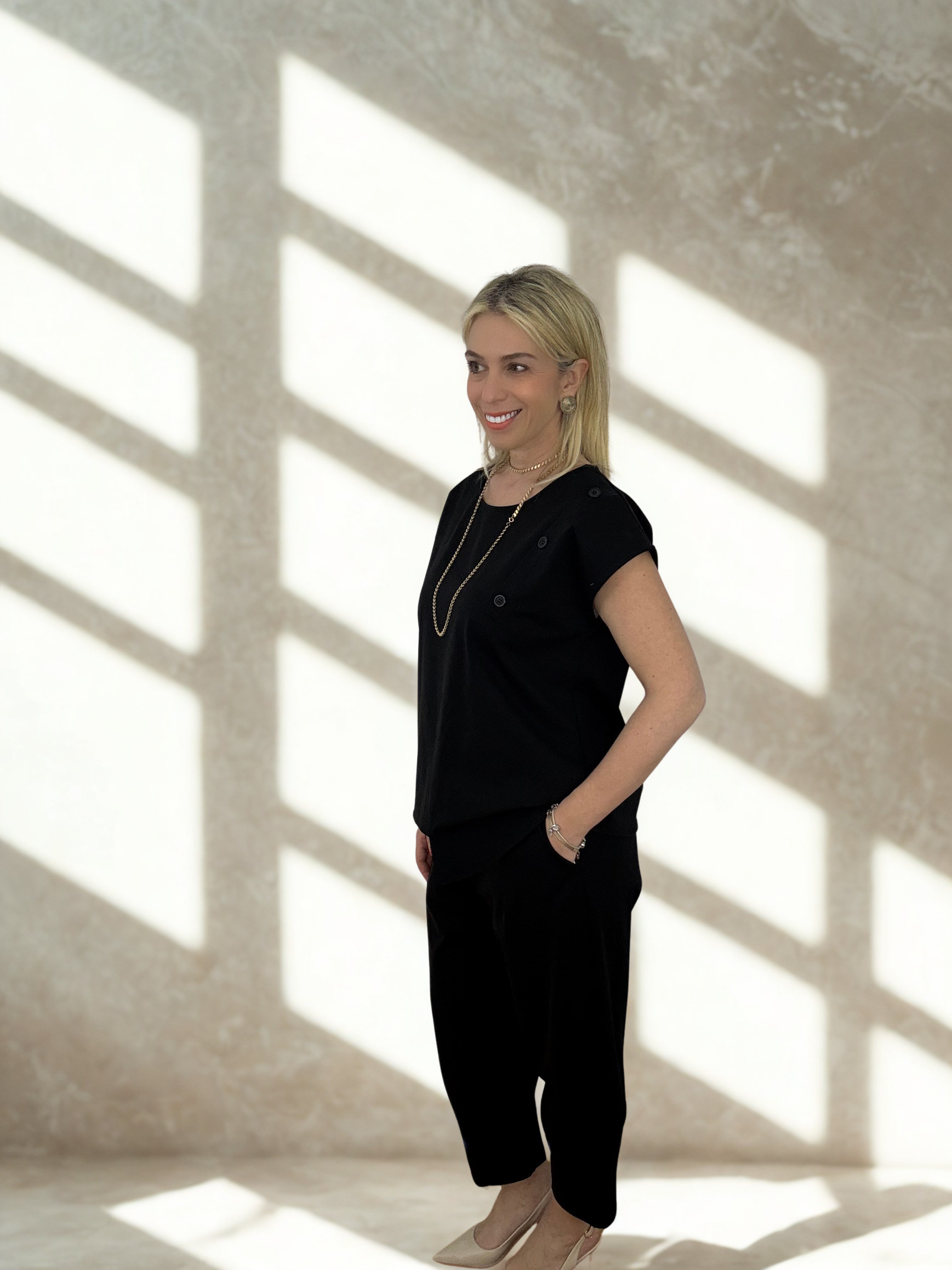 Minimal αισθητική και απόλυτη άνεση συνδυάζονται σε αυτό το κομψό σετ, ιδανικό για καθημερινές αλλά και πιο προσεγμένες εμφανίσεις. Η μπλούζα με τις διακριτικές ασύμμετρες λεπτομέρειες και τα κουμπιά στον ώμο δίνει μία μοντέρνα πινελιά, ενώ το παντελόνι με την άνετη γραμμή χαρίζει κομψότητα και ελευθερία κινήσεων.