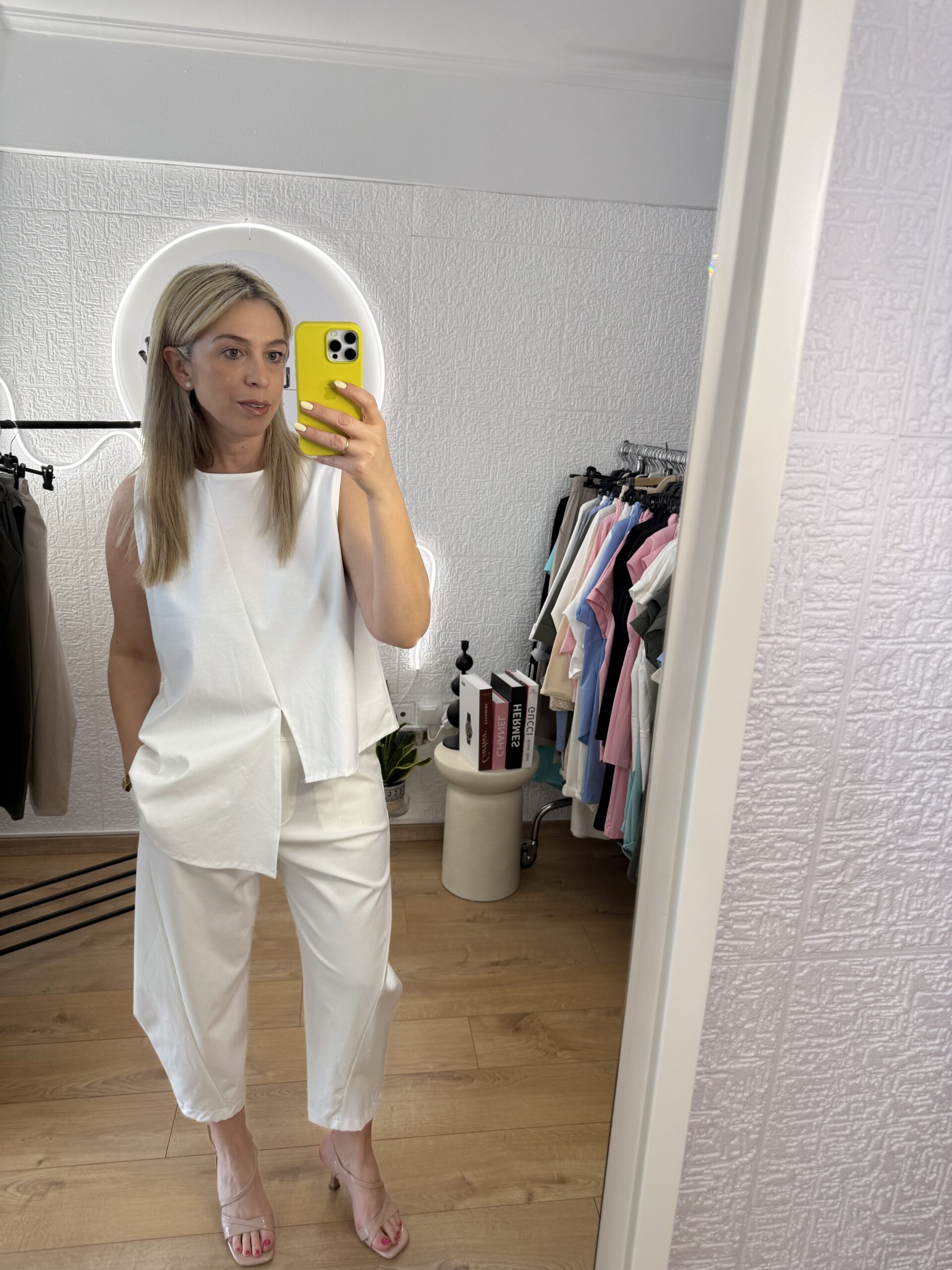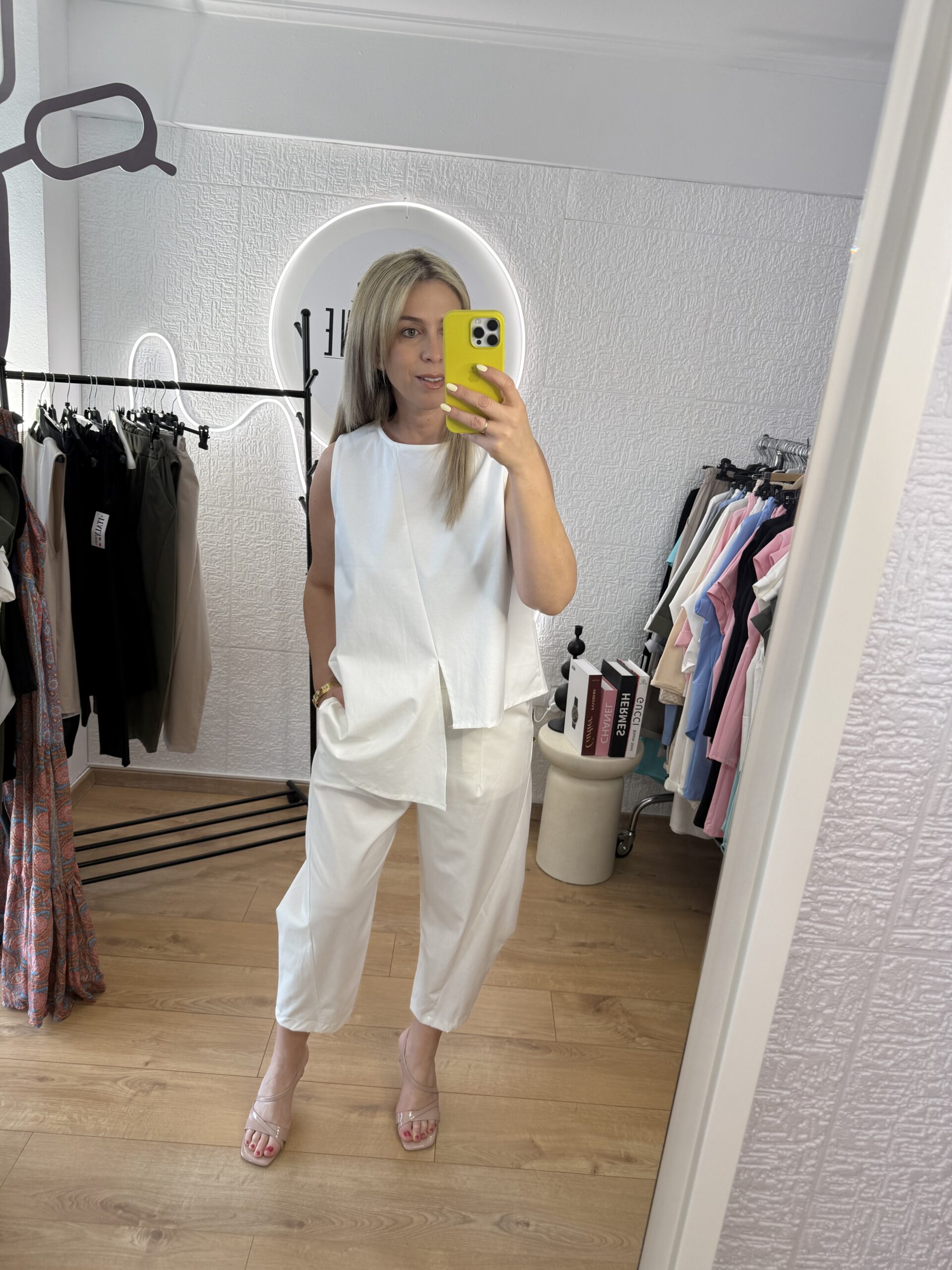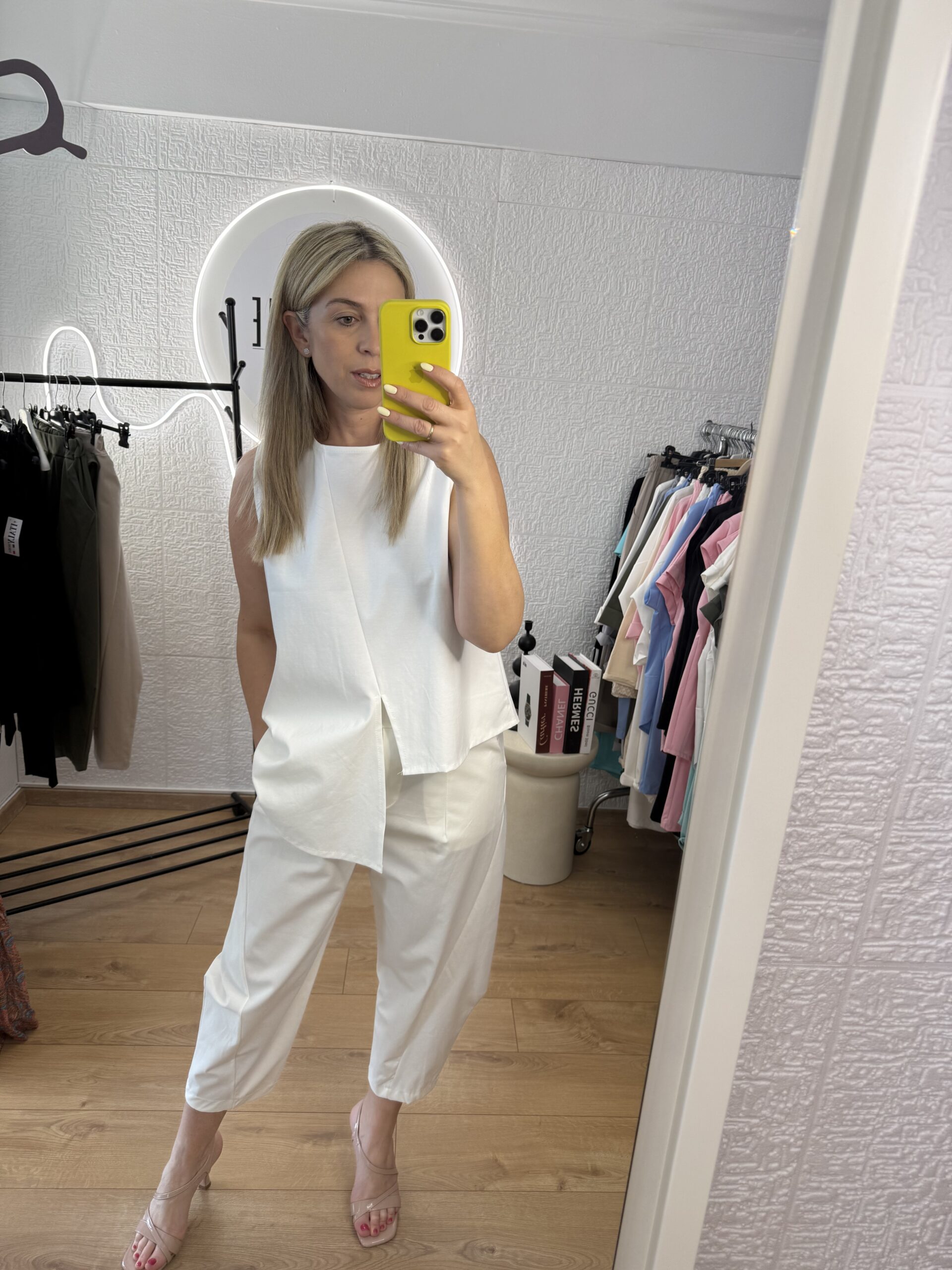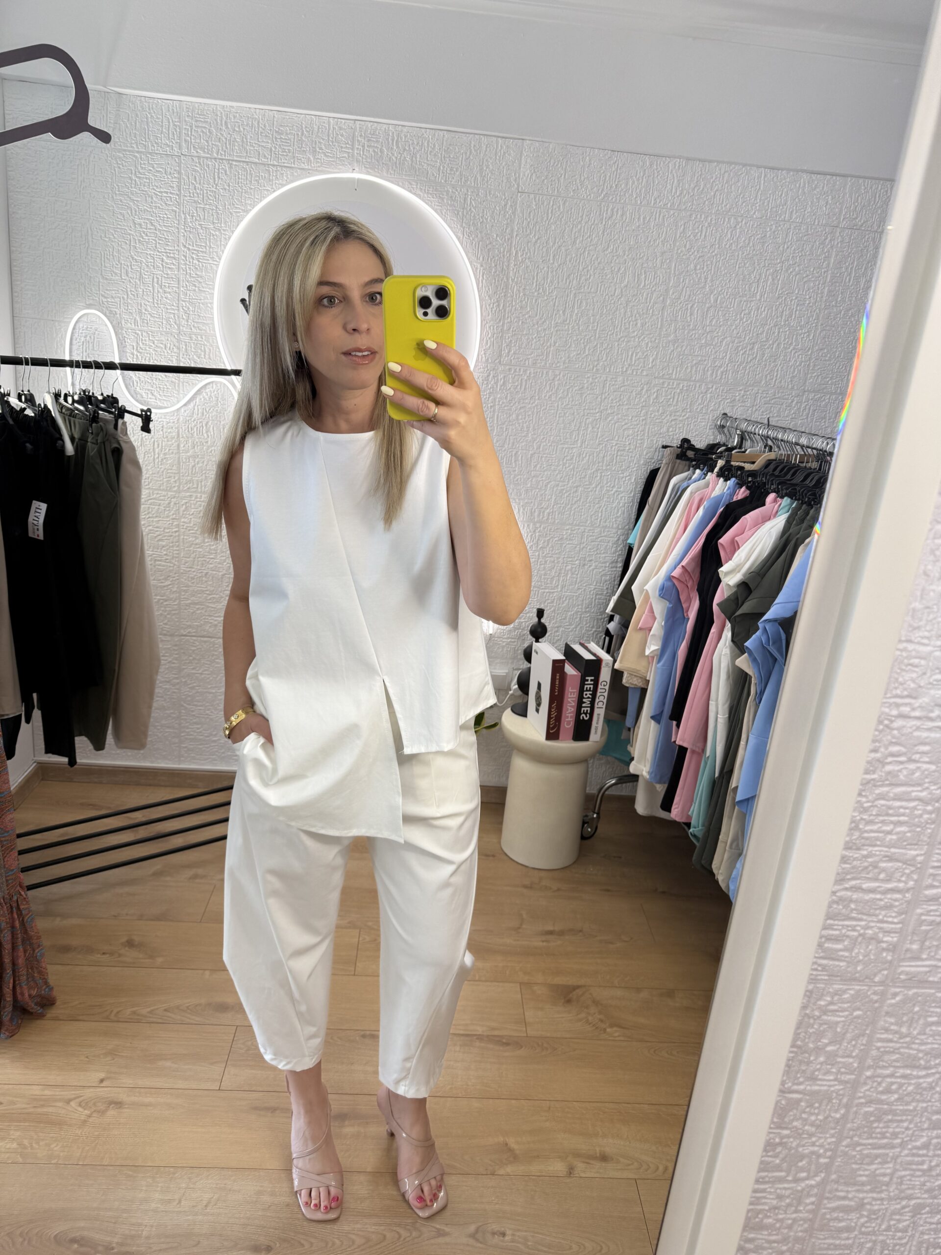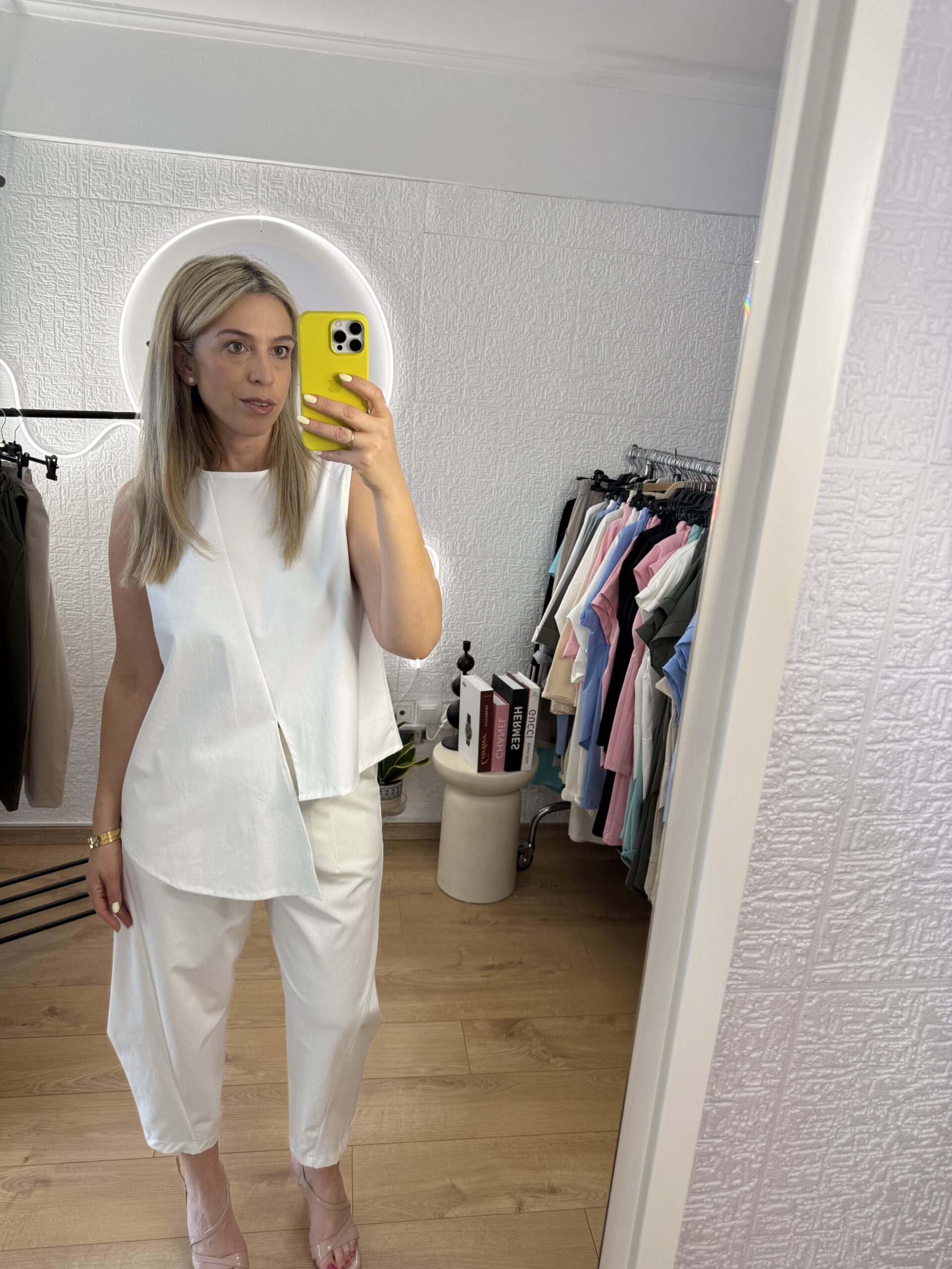 Υπέροχο καλοκαιρινό άνετο σετ για ένα ιδιαίτερο στυλ. Αμάνικο με χαλαρή μασχάλη που δεν πιέζει και εφαρμόζει άψογα. Κολακεύει κάθε σωματότυπο.
