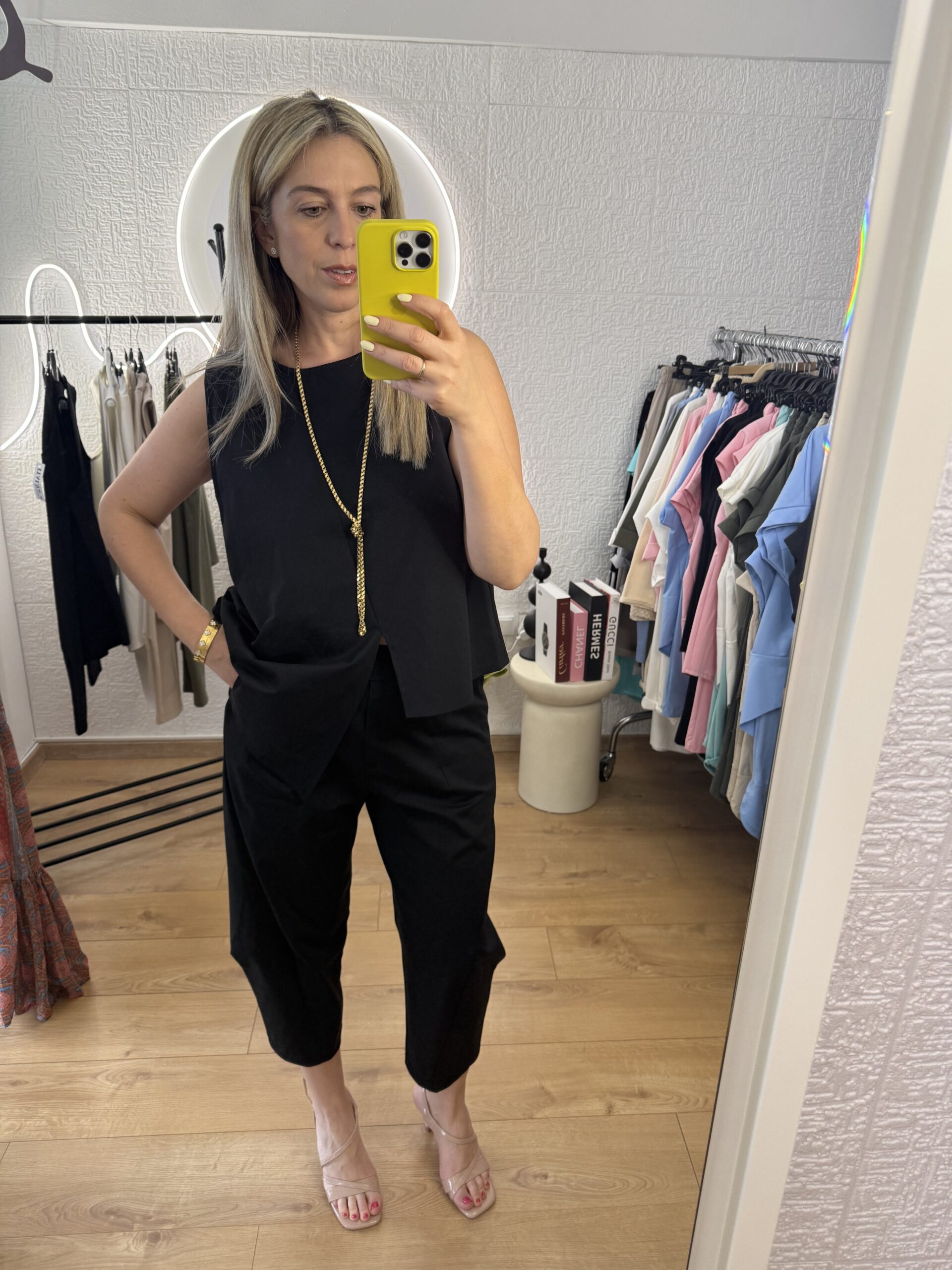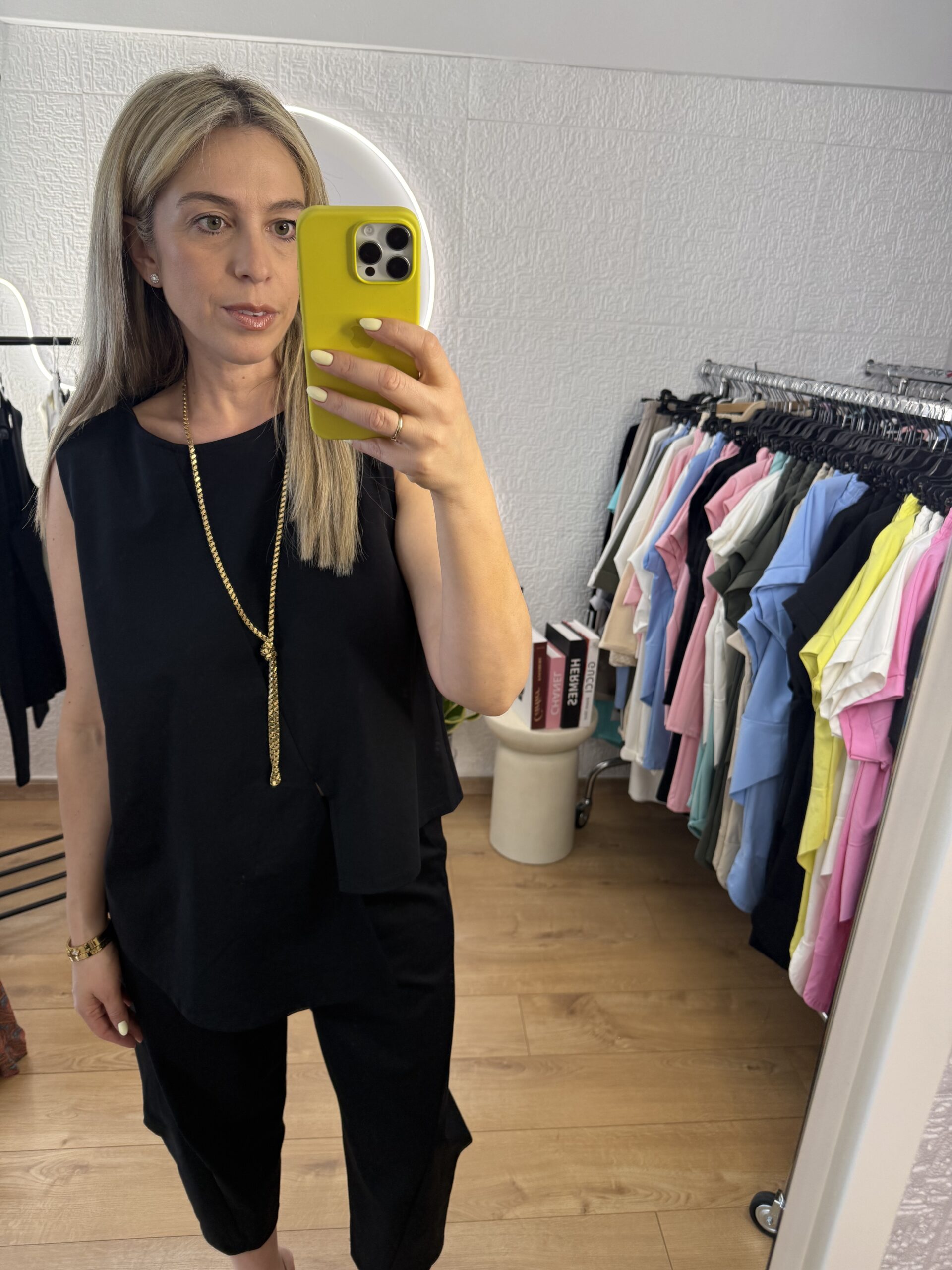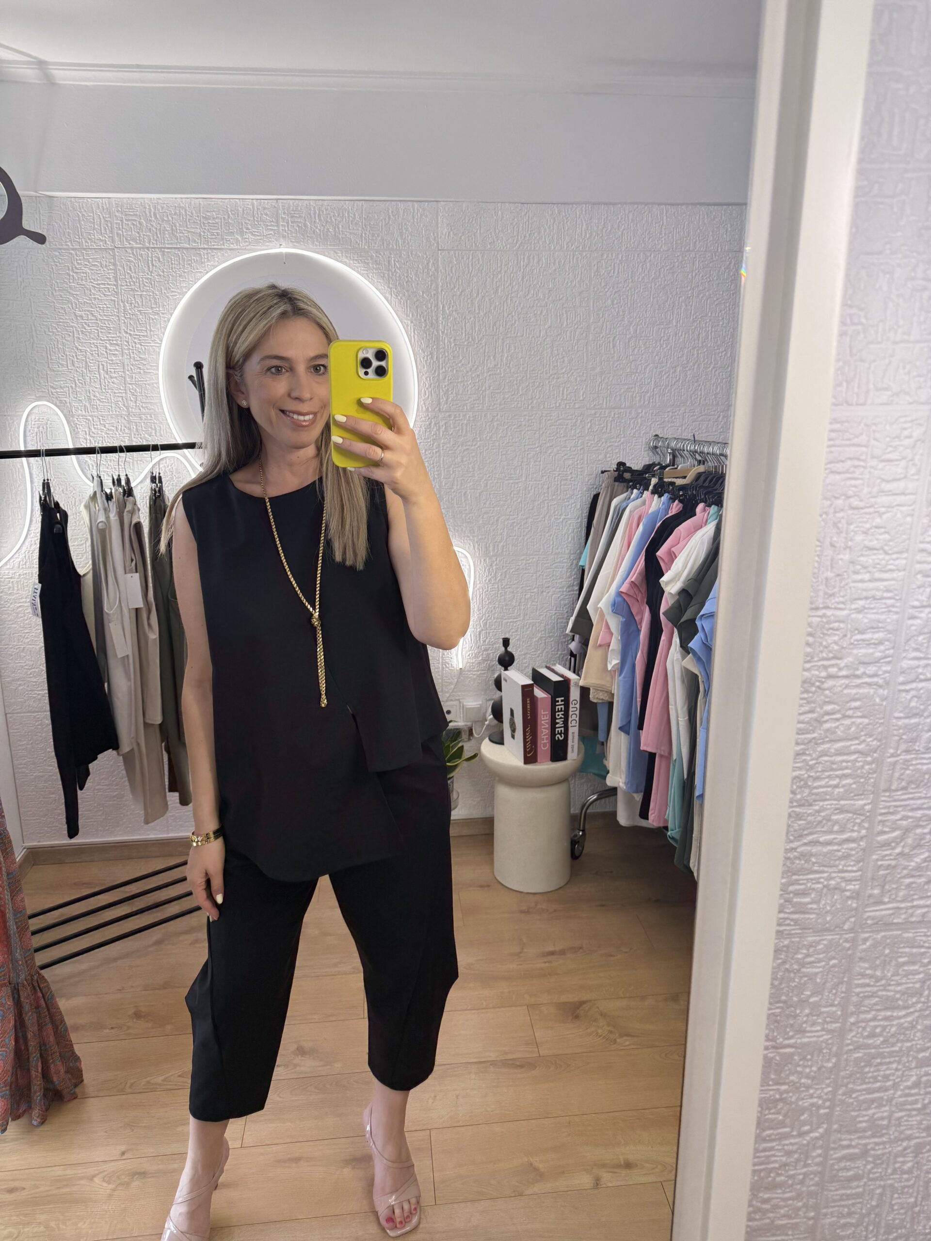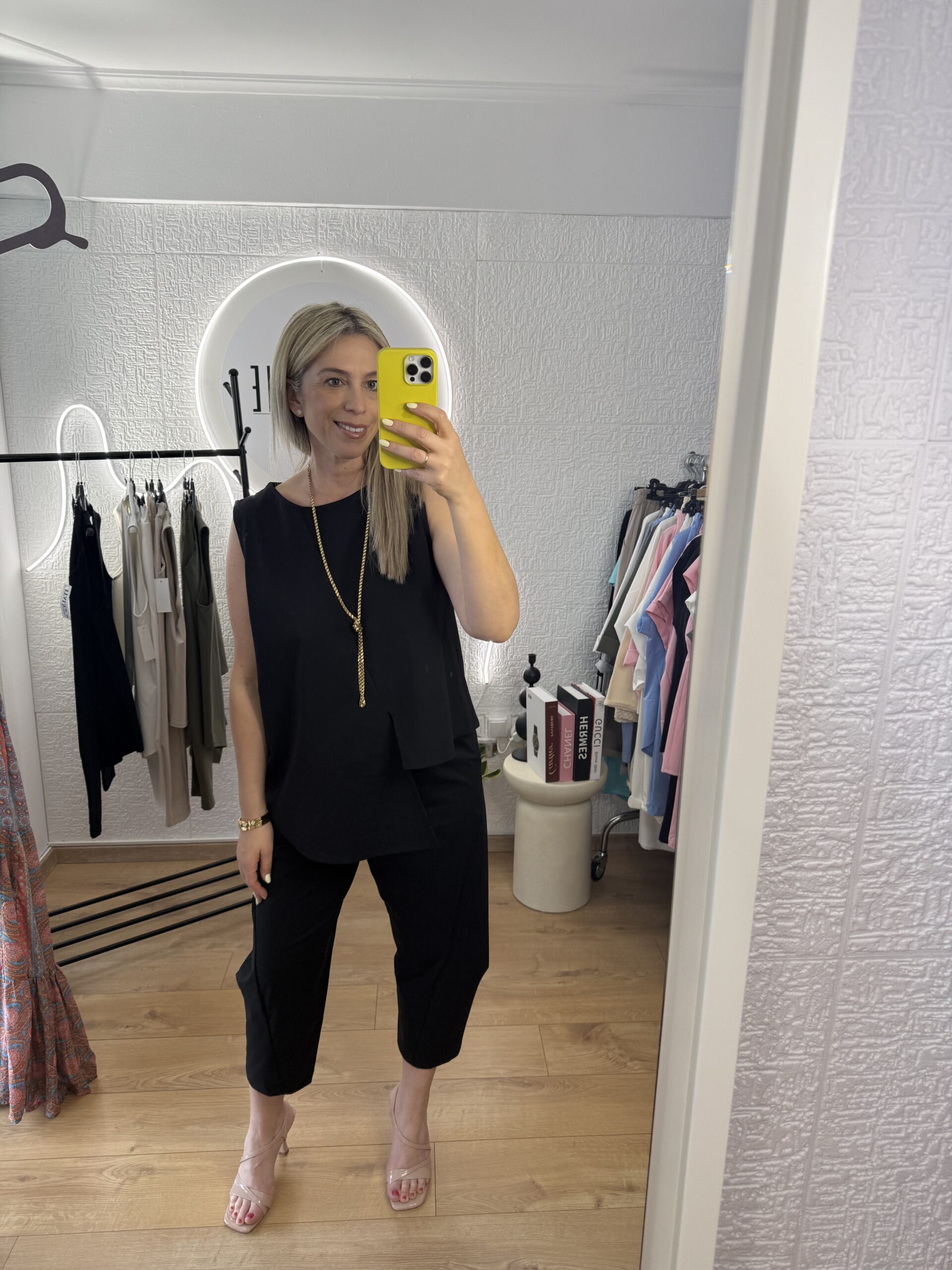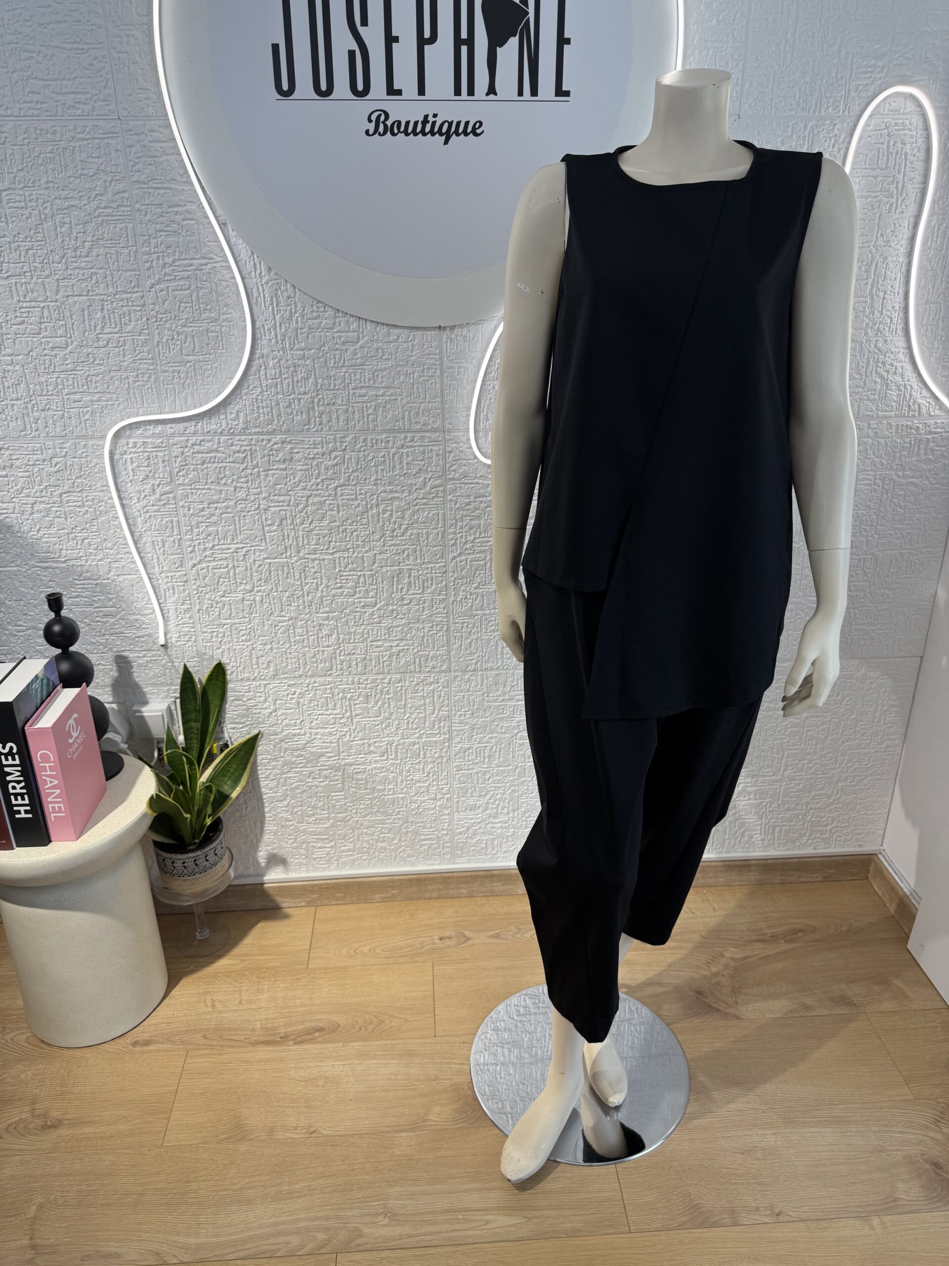 Υπέροχο καλοκαιρινό άνετο σετ για ένα ιδιαίτερο στυλ. Αμάνικο με χαλαρή μασχάλη που δεν πιέζει και εφαρμόζει άψογα. Κολακεύει κάθε σωματότυπο.