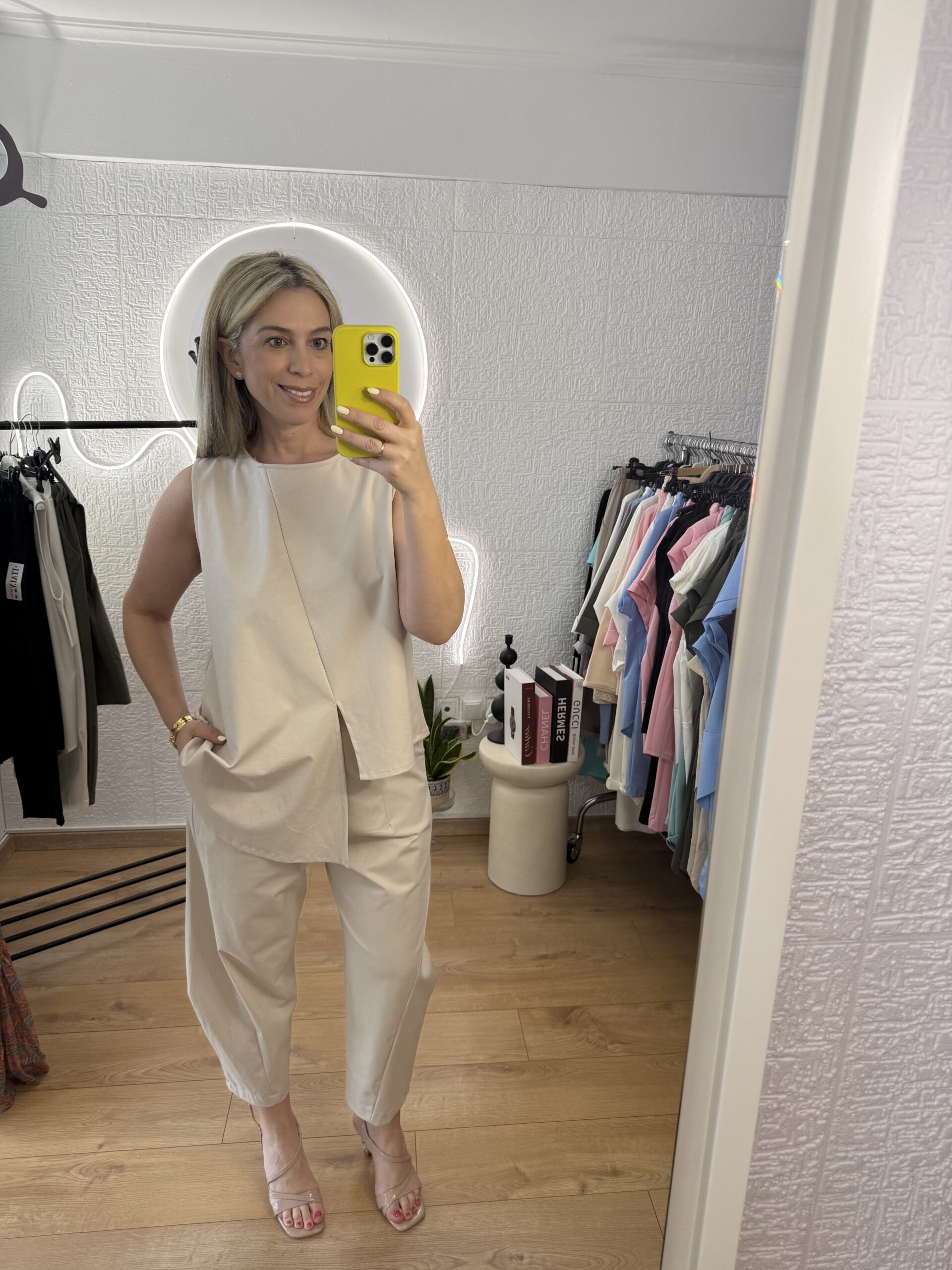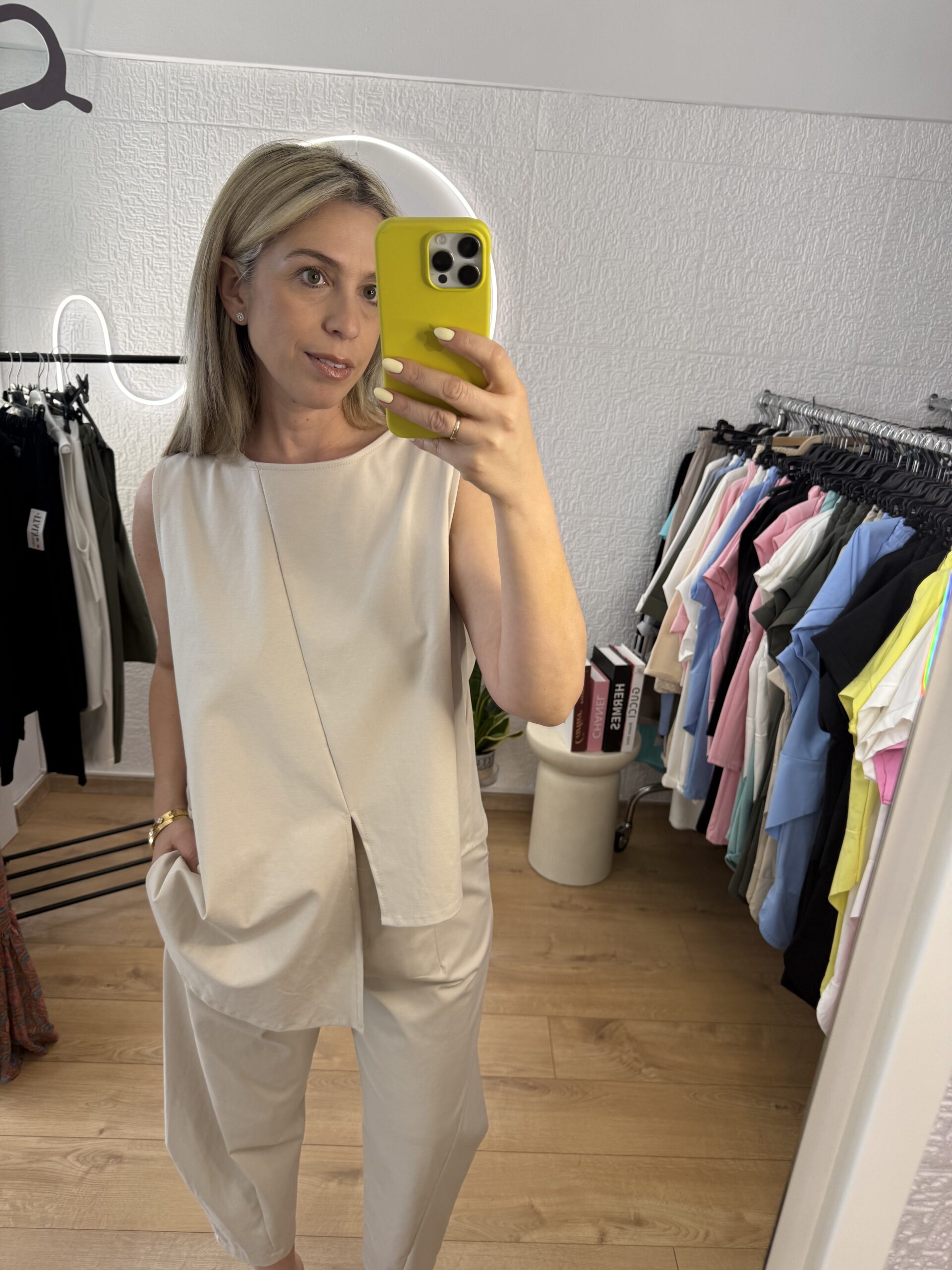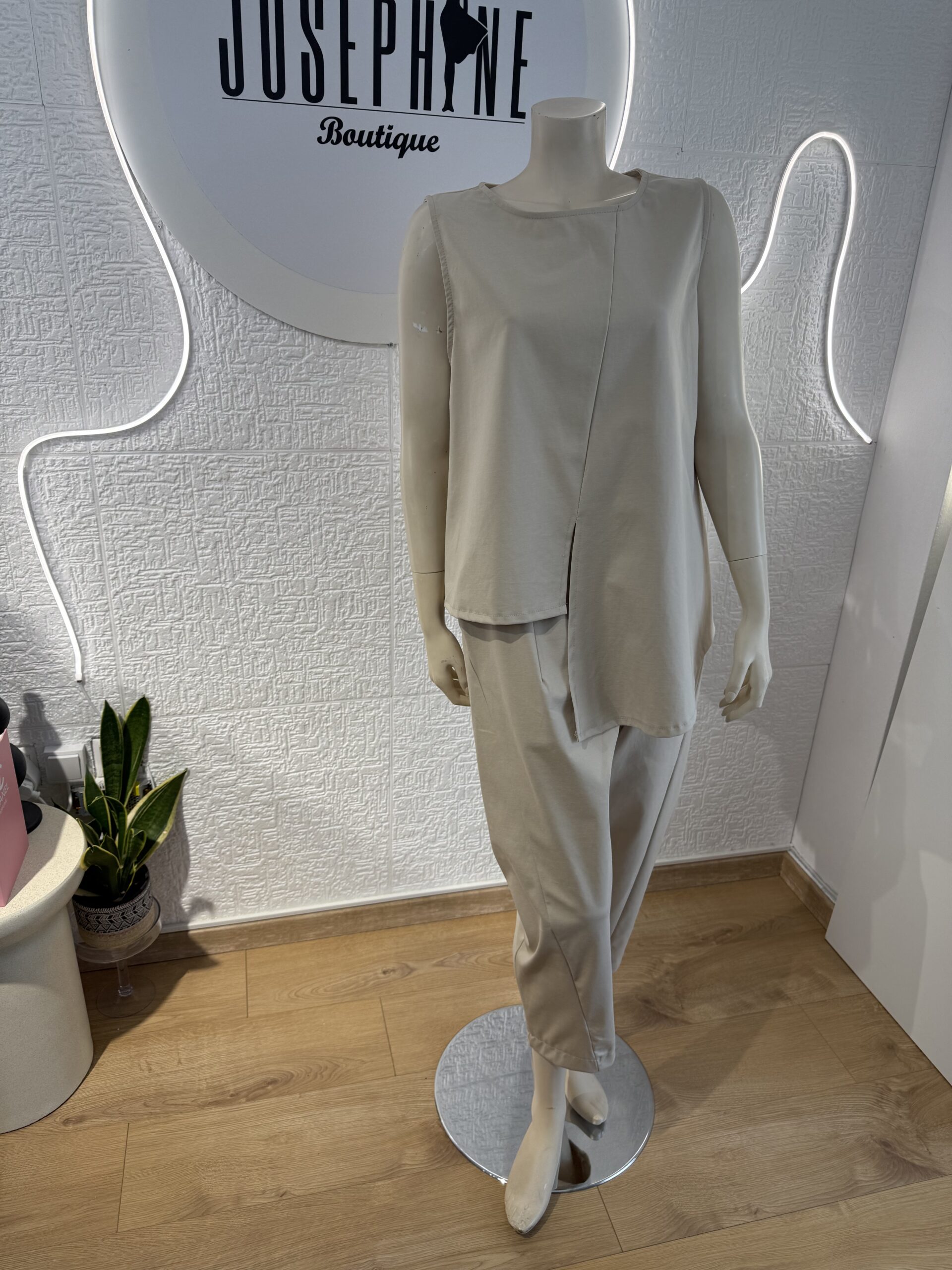 Υπέροχο καλοκαιρινό άνετο σετ για ένα ιδιαίτερο στυλ. Αμάνικο με χαλαρή μασχάλη που δεν πιέζει και εφαρμόζει άψογα. Κολακεύει κάθε σωματότυπο.