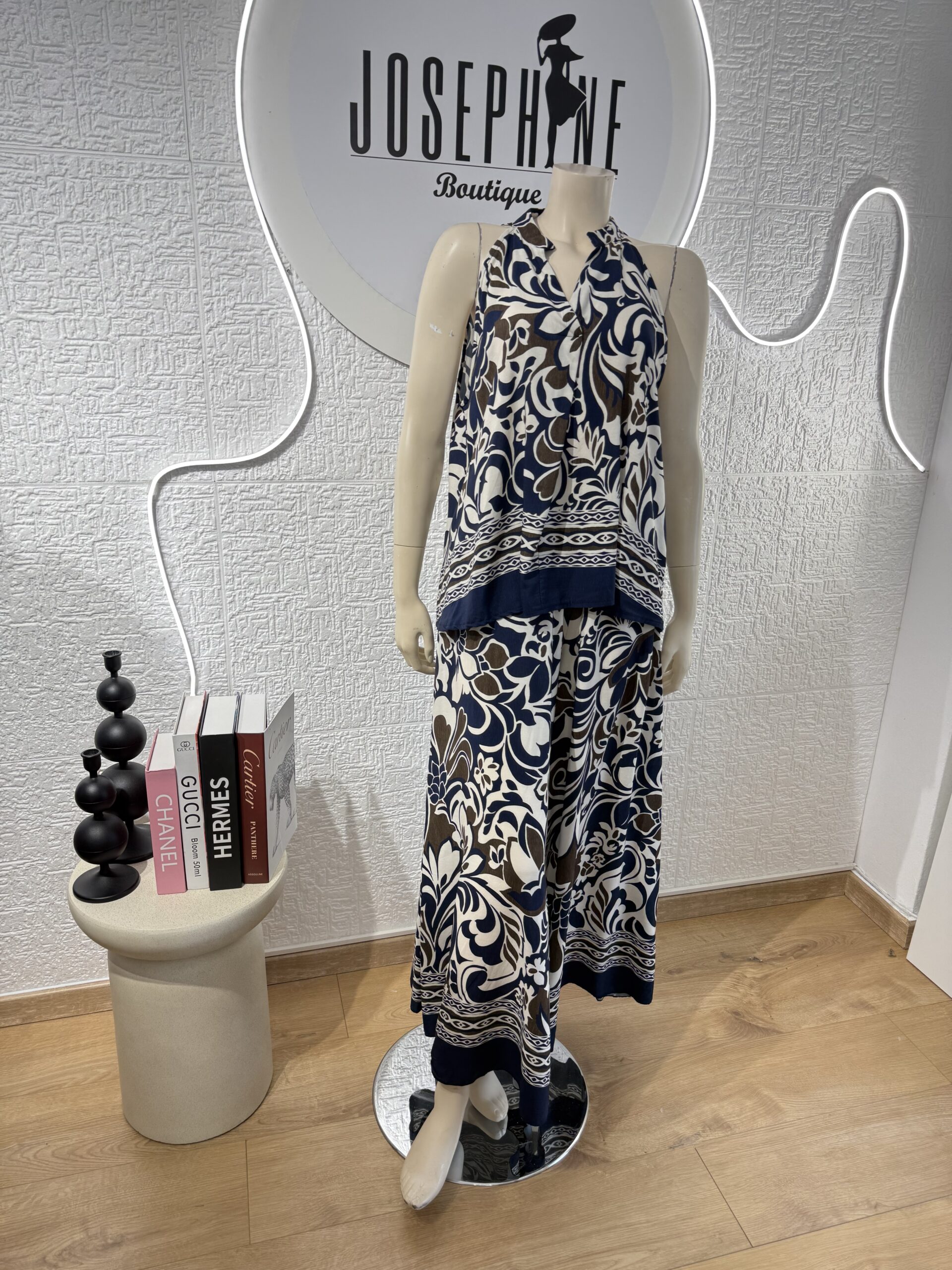 Αέρινο καλοκαιρινό δροσερό σετ για να κλέψεις τις εντυπώσεις. Αποτελείται από αέρινη αμάνικη μπλούζα σε ριχτή γραμμή και μία παντελόνα που δίνει την αίσθηση ότι φοράς μια όμορφη φούστα. Ένα ιδιαίτερο σετ που θα φορέσεις στην καθημερινότητα σου.